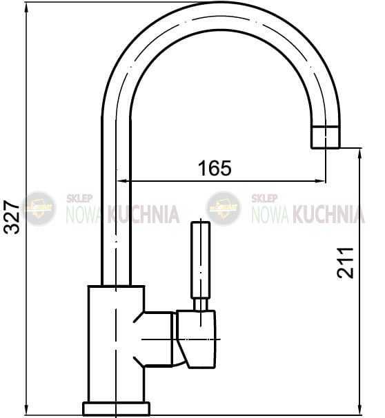 Jednootworowa bateria zlewozmywakowa z obrotową wylewką o zasięgu 165 mm i ceramiczną głowicą. Regulacja strumienia wody za pomocą jednej dźwigni.