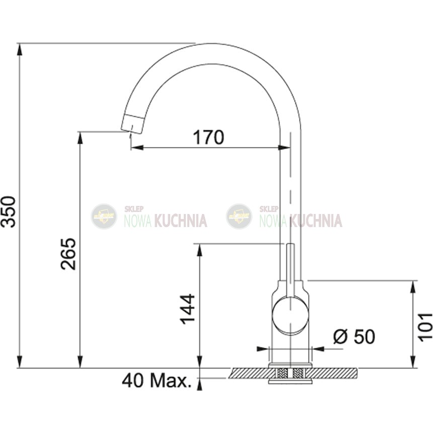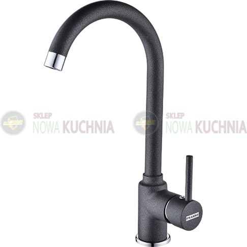 Jednootworowa bateria zlewozmywakowa z obrotową wylewką. Regulacja strumienia wody za pomocą jednej dźwigni.