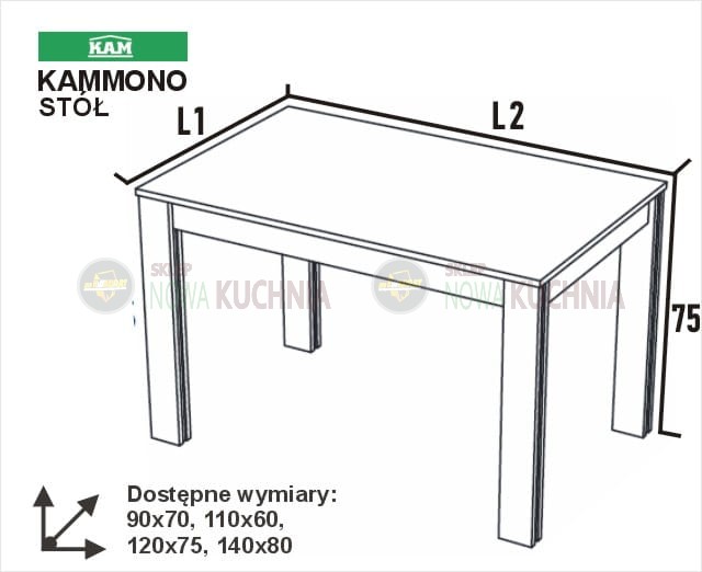 KAMMONO Stół 90x70, 110x60, 120x75, 140x80