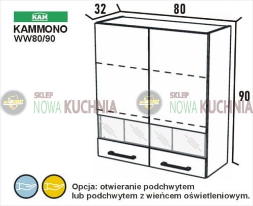 Szafka wisząca 2-drzwiowa z witryną ( szkło mleczne ) z systemu KamMONO.