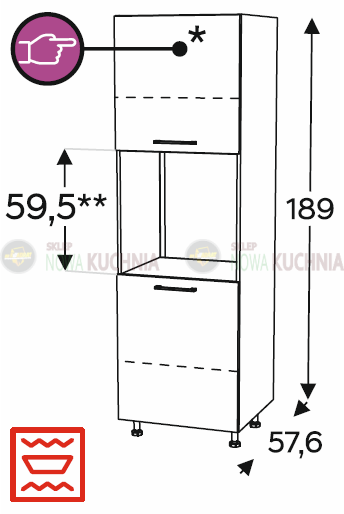 Słupek stojący do zabudowy piekarnika, zaprojektowany do standardowych wymiarów sprzętu AGD.